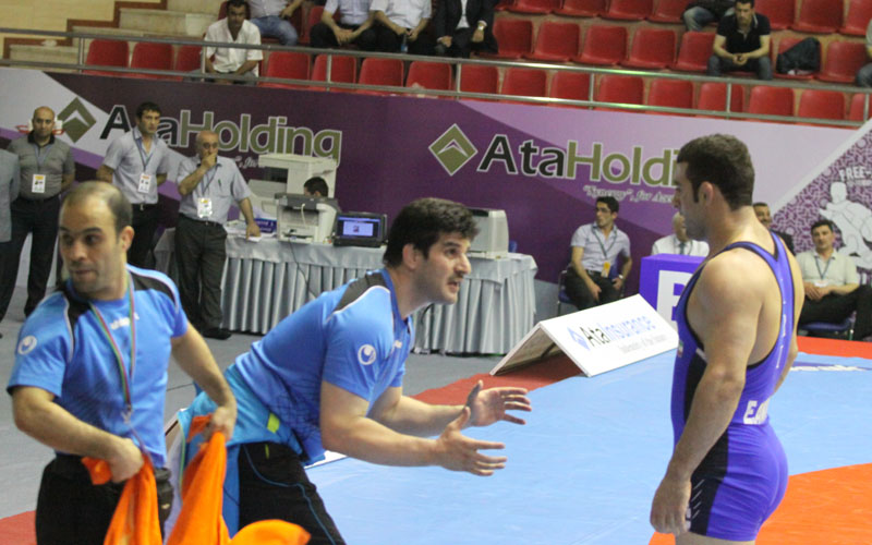 55 كيلوگرم: حميد سوريان – الچين علييف(قهرمان سالهای 2011 و 2010 اروپا) (5- صفر * صفر- 1* صفر- 2 * برنده آذربايجان)
