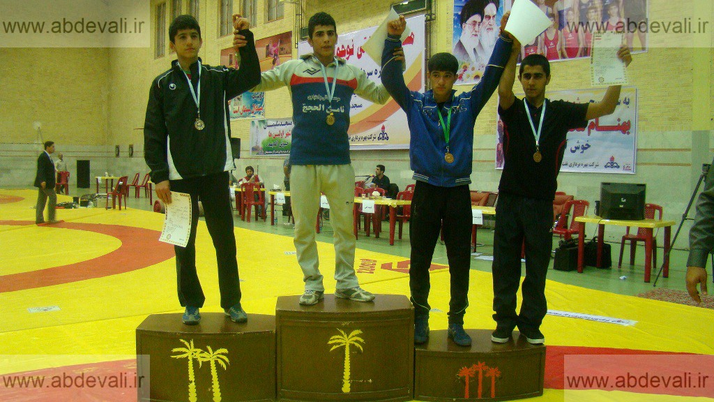 60 کیلوگرم:1-ساسان جلیلیان(خرمشهر)2-آرمین قاسمی (نفت مسجدسلیمان) 3- رضا جعفرراد (دزفول) و محمد ارجمندنژاد (اهواز الف).